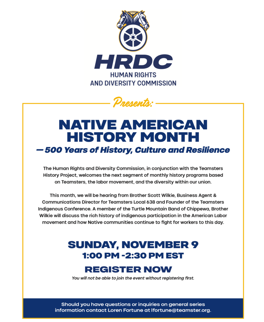 The programs, presented in Teams format, will be open to all and approximately 90 minutes in length; registration is required to receive the link to join the session. We do encourage you to share this announcement with anyone you believe to be interested; this is not just for Teamsters but to everyone in your communities. We hope this program will generate some lively discussion and ideas for programs in your locals, communities, and at home.