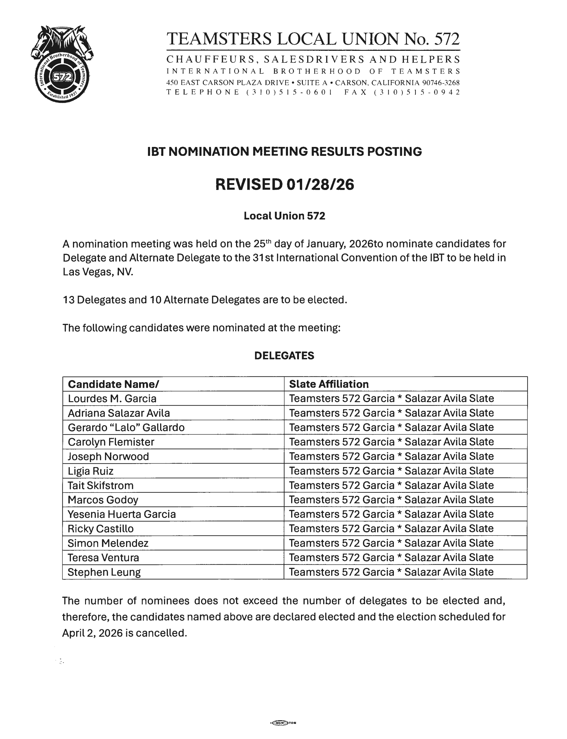 REVISED IBT Nomination Meeting Results
