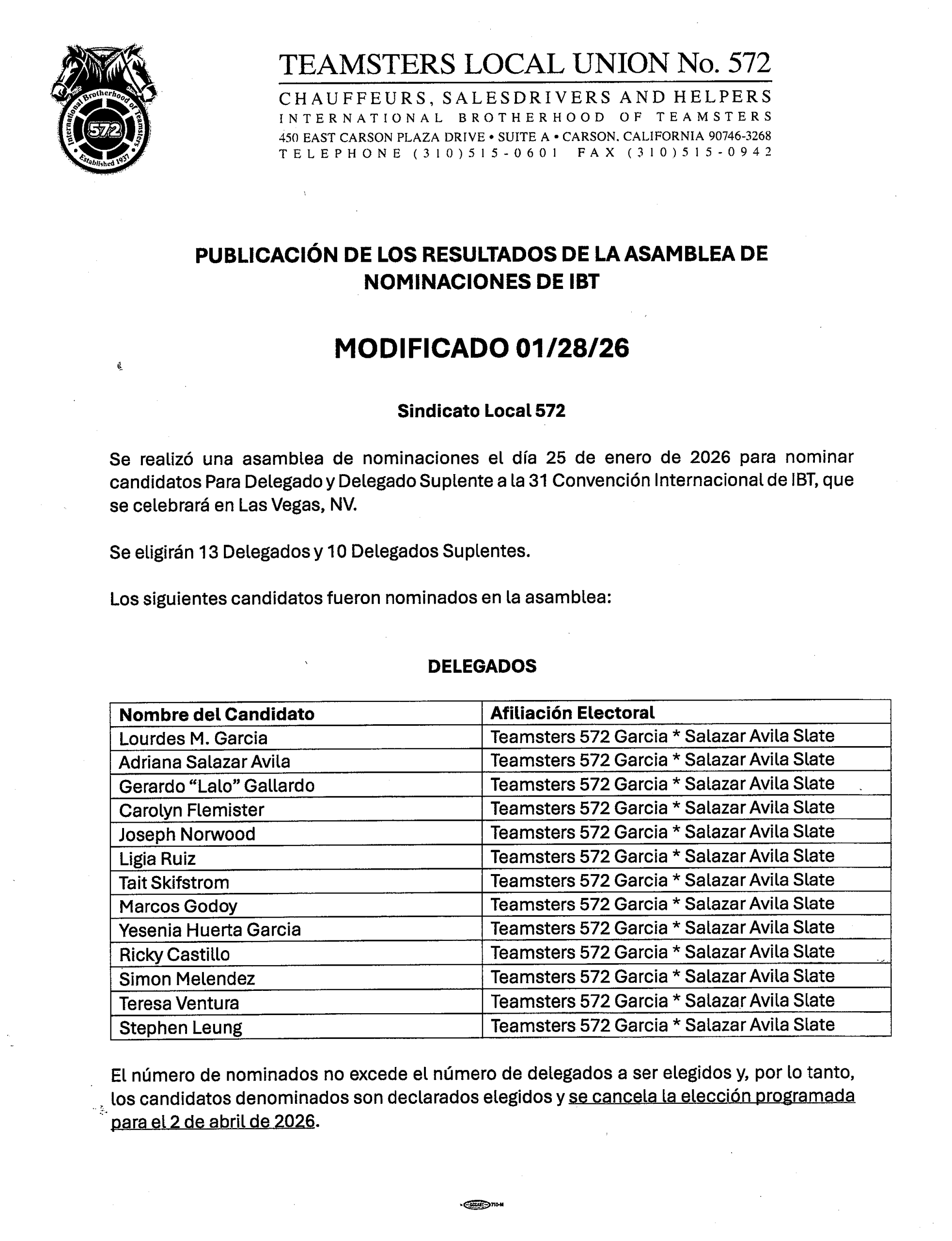 Teamsters Local 572 Voter Guide
